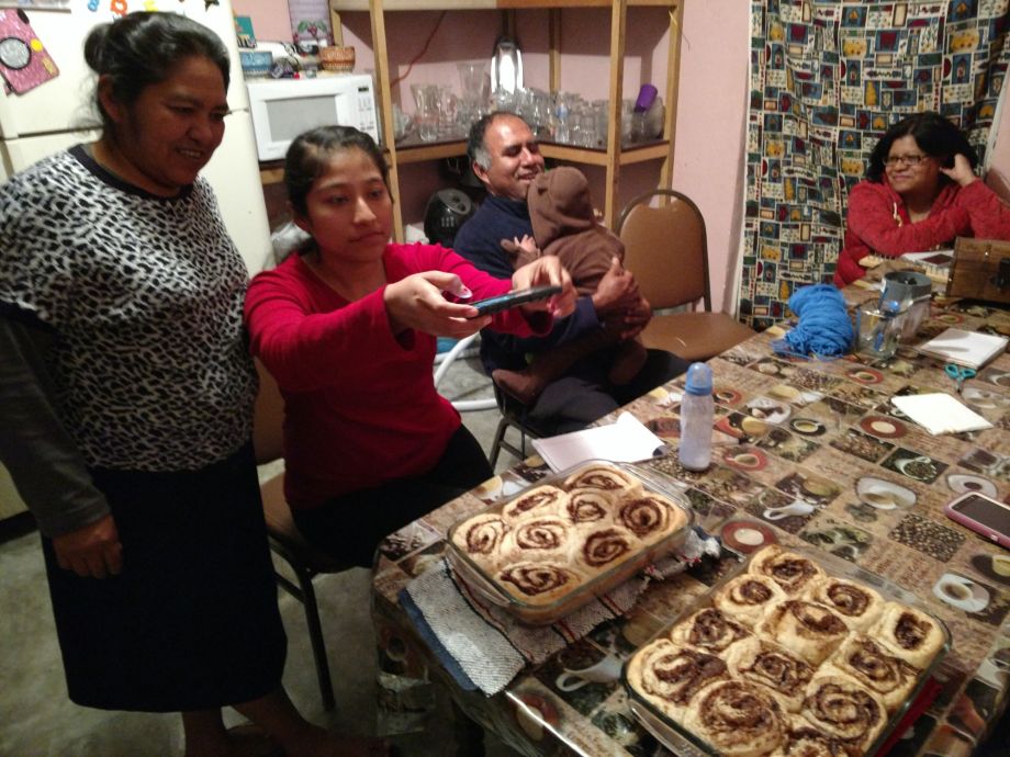 About a month later, Pastor Candelario and his family invited us to lunch at their house. After we accepted their invitation I asked him and his wife, Carmen if after lunch I could teach her how to make the cinnamon rolls. They readily accepted and were very excited! After we had our lunch on that day, I asked Carmen if she was ready for me to teach her, her daughter, and her daughter in-law how to make the rolls. She asked me to wait a few more minutes, and then people started to show up. My little three person class quickly turned into ten or eleven people crammed around the pastor’s dining room table and nine children running about. But the class was fun, despite my limited spanish, extreme nervousness, and the fact that it was so cold it took the rolls twice as long as normal for them to rise. Everyone really enjoyed sampling the fruits of our labors, as well.