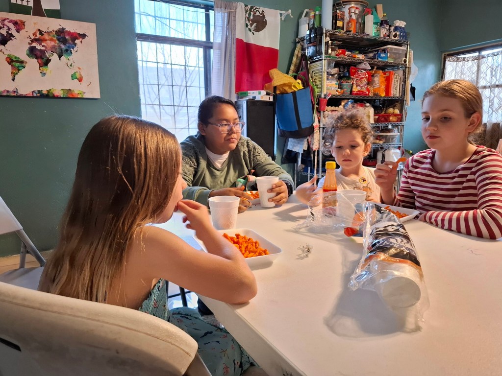 We made small talk in the car, she’s a typical thirteen year old. Her favorite color is lilac, she collects key chains, likes to play games, and is enjoying her first year of Secundaria (equivalent to seventh grade in the US), she is also the closest friend that Chloe has at church. When we got to the house, we offered her something to drink, and waited a few minutes to see if anyone else would come. No one else did, but that was OK. Everything had to be adjusted down for a smaller group, but we figured it out. After our devotional time, we opened those cheetos. My kiddos had been asking for them for two days by this point and they were excited. But it became pretty obvious that the cheetos were really stale.